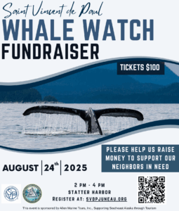 Please joins us for a whale watching tour! Tickets are $100 for adults, $75 for children. If you are unable to attend and would like to support SVdP, please consider purchasing a ticket and donating it for a St. Vincent de Paul neighbor.